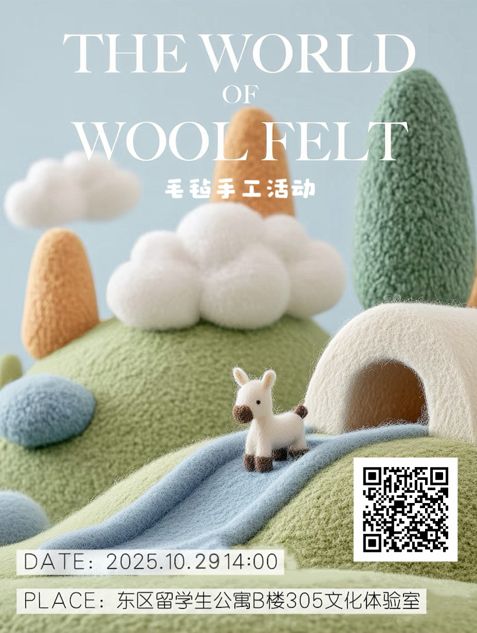 毛毡制作以其独特的工艺和丰富的艺术表现力,成为一项重要的非物质文化遗产。在这美好的秋季,诚邀国际学生走进毛毡造物世界,以柔软的羊毛为媒介,在戳戳点点间创造独特的魅力制品。