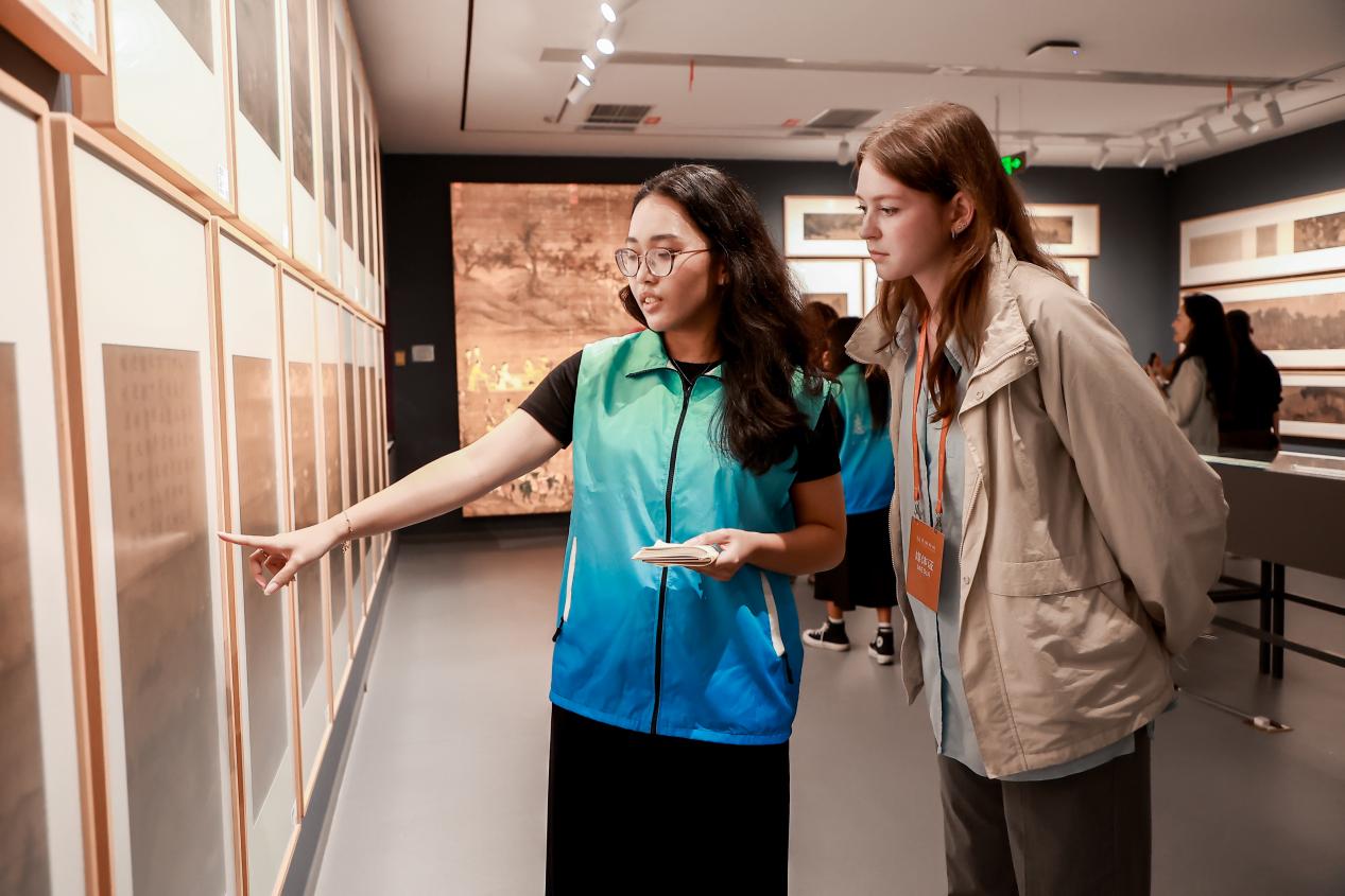 除了作为观众,来自美国的聂凯文和来自马来西亚的余铭儿以讲解员的身份参与此次研学。这次特殊的体验,也让他们更加了解中国、了解中国文化中“薪火相传,继往开来”的守护精神。